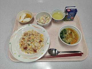 チャーハン・マセドアンサラダ・わかめスープ・杏仁豆腐・牛乳