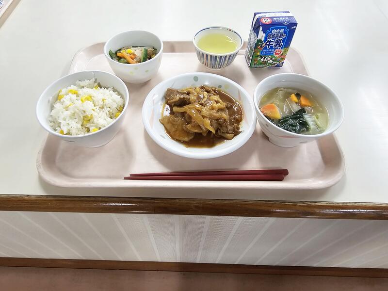 生徒は17時には登校して、給食室で給食を食べます。調理室でできあがったばかりのものなので、毎日温かい給食を食べることができます。音楽が流れながら、友達、先輩、先生方と食べる給食はとてもおいしいです。
