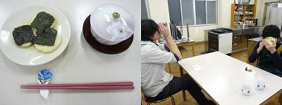 みんな神妙な顔をしながら、お茶と餅をおいしくいただきました。