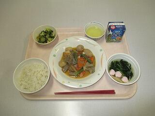 麦ご飯・鰯の梅味噌煮・ひじきの炒り煮・豚汁・牛乳