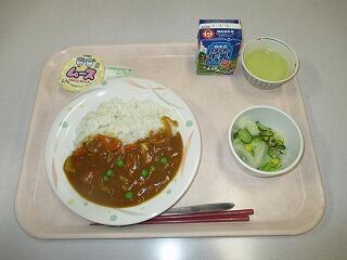 麦ご飯・シーフードカレー・フレンチサラダ・ムース・牛乳