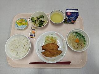 麦ご飯・鶏の照る焼き・ごま和え・大根の味噌汁・牛乳