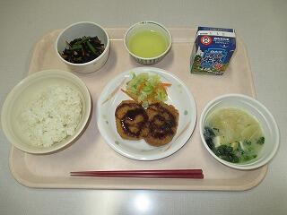 麦ご飯・豚肉の生姜焼き・ピーナッツ和え・ゴボウの味噌汁・牛乳