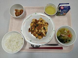 麦ご飯・麻婆豆腐・揚げ餃子・キャベツ中華スープ・牛乳