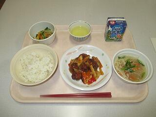 麦ご飯・肉団子の甘酢あんかけ・もやしナムル・春雨スープ・牛乳