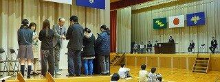 本日は表彰式、終業式、離任式が行われました。