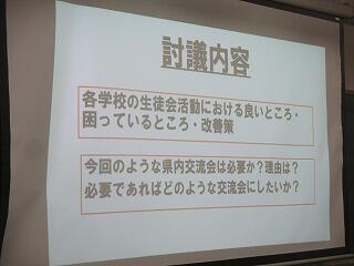 各学校の生徒会の学校紹介に続き、グループ毎でアイスブレーキングで打ち解け合い、「各学校の生徒会活動における良いところ・困っているところ・改善策」というテーマで熱心に討論しました。