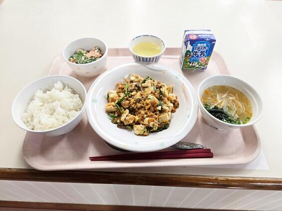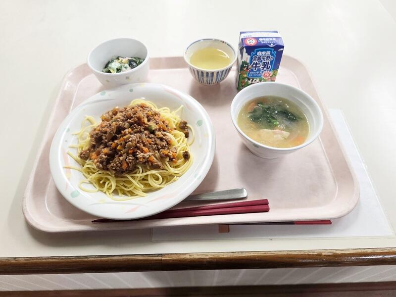 生徒は17時には登校して、給食室で給食を食べます。調理室でできあがったばかりのものなので、毎日温かい給食を食べることができます。音楽が流れながら、友達、先輩、先生方と食べる給食はとてもおいしいです。