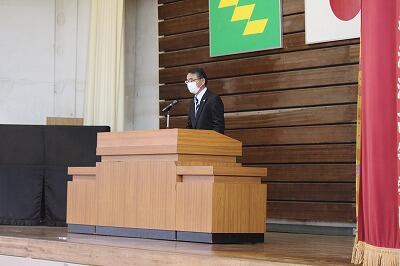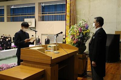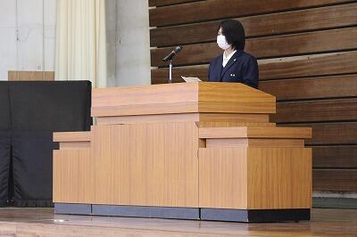 生徒代表挨拶を行う、生徒会の堀内さん。コロナの影響で一変した生活の中で感じた“当たり前”の大切さについて話しました。