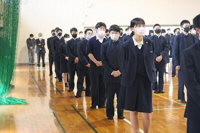 宮崎海洋高校でもその日の朝、全校生徒で1分間の黙祷を捧げました。