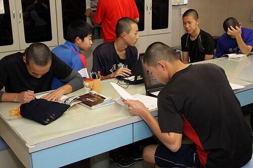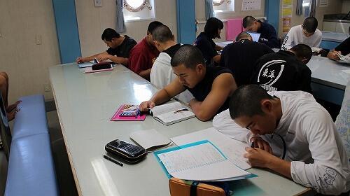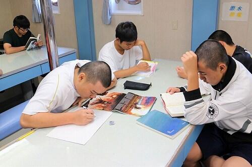 ローリングする中、実習生は余裕の表情で課題学習や作業を進め