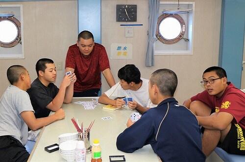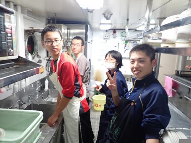 片付けています。実習生は一人一人、サロンにて機関長の口頭試問を