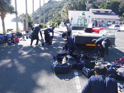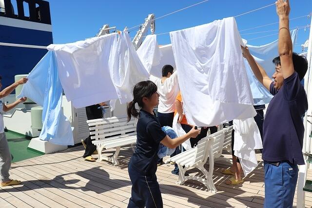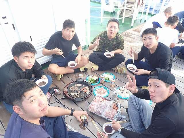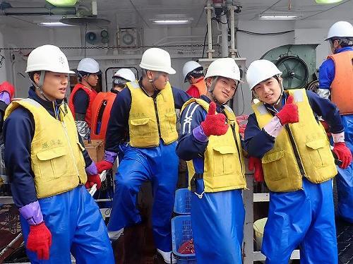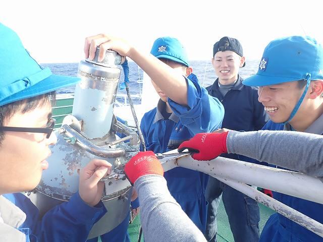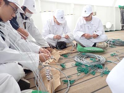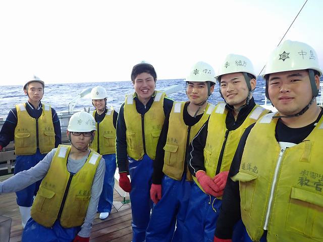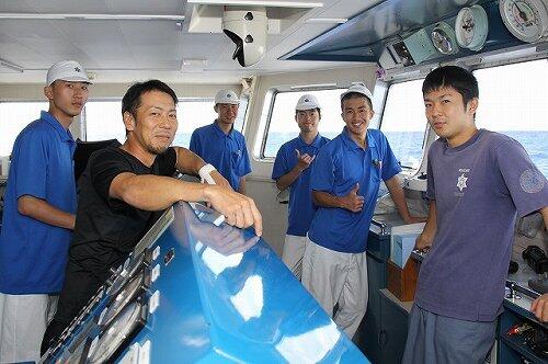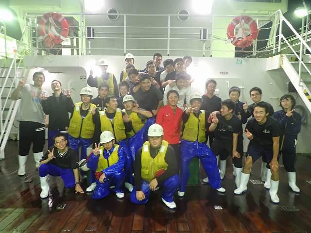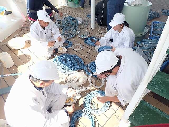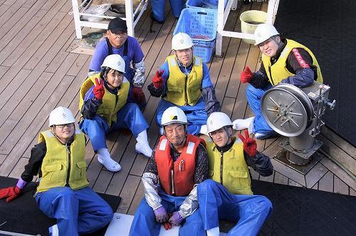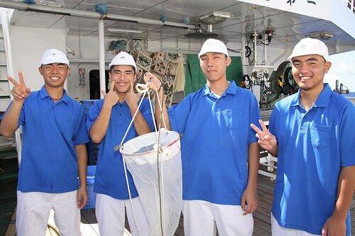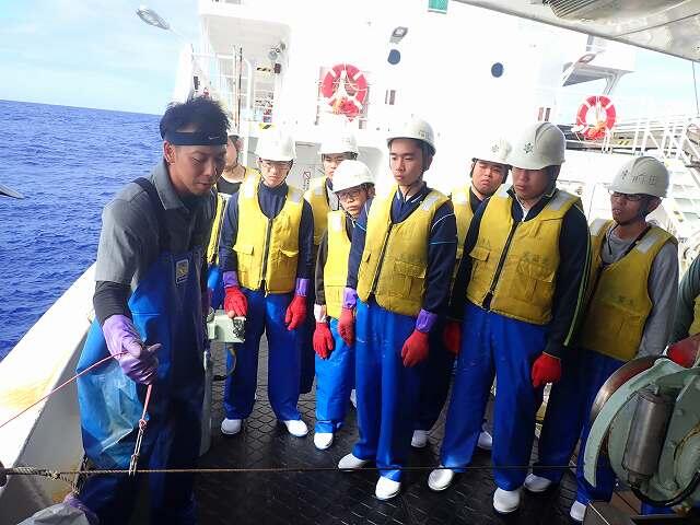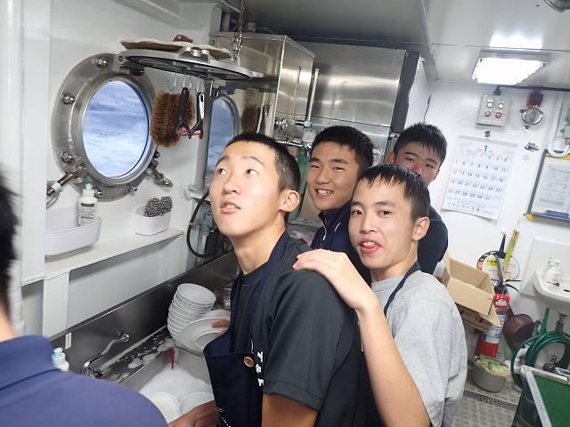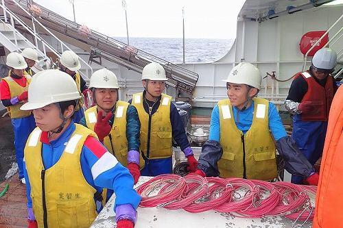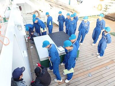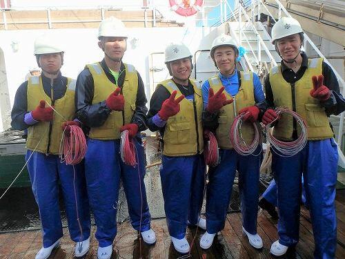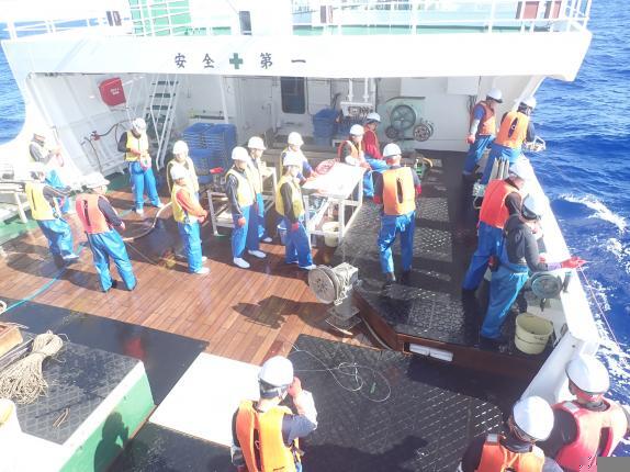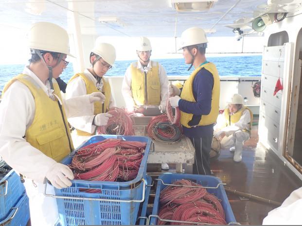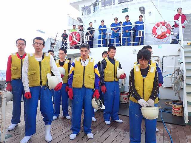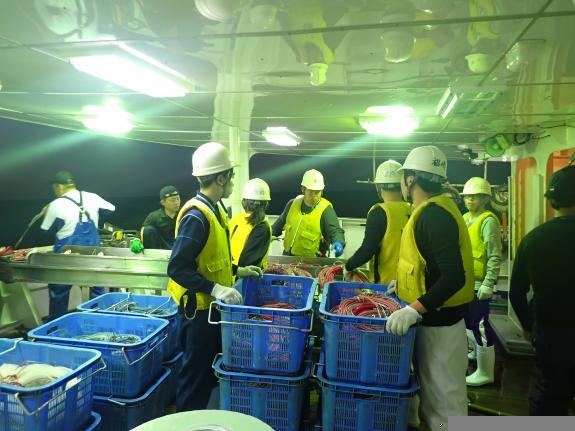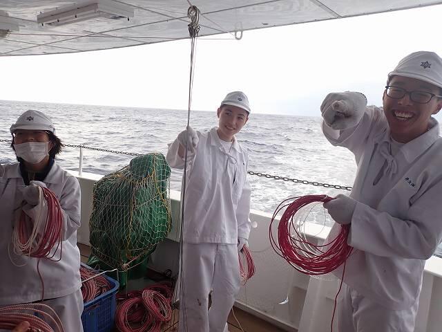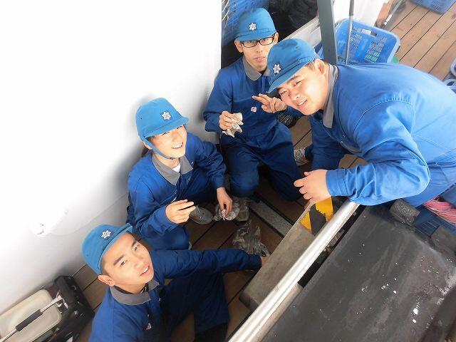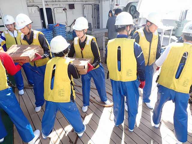 退避させ、乗組員のみ対応となりましたが、実習生も最後の片付けは胴の間に