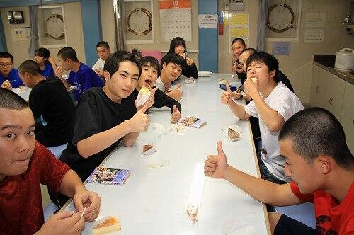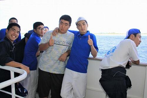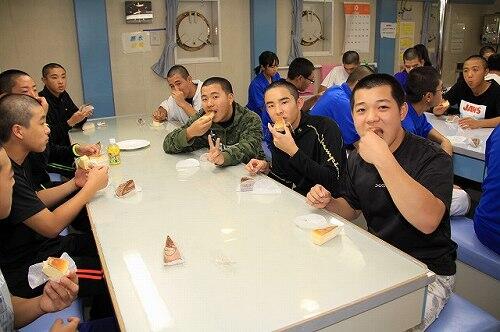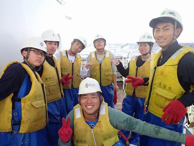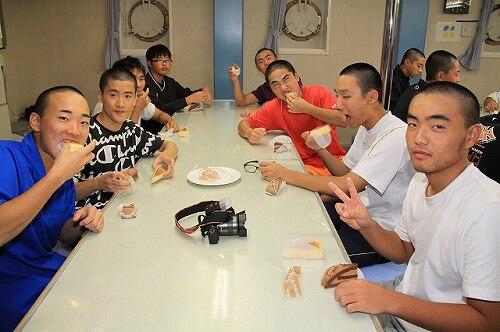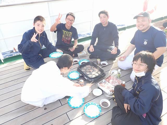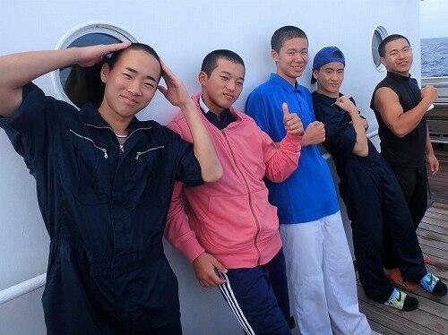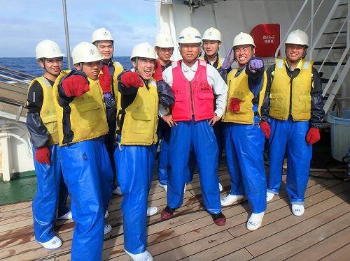 航海一番の山場を無事に乗り越えた実習生は満面の笑顔です。