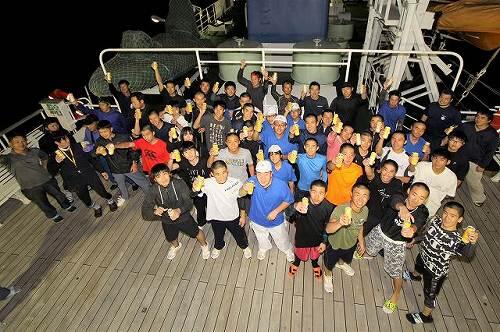 総員笑顔で記念撮影し無事の操業終了を喜びました。実習生は千秋楽