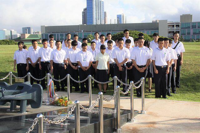 午前7時50分にホノルル11号岸壁に着岸しました。学校からのお出迎えありがとうござい