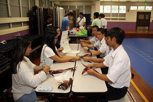 実習生は空き時間に、船内にあるホノルルの無料タウン誌を開き付箋を沢山貼っては