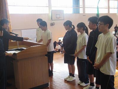 ちょっと恥ずかしながらも、代表生徒が頑張っていました。