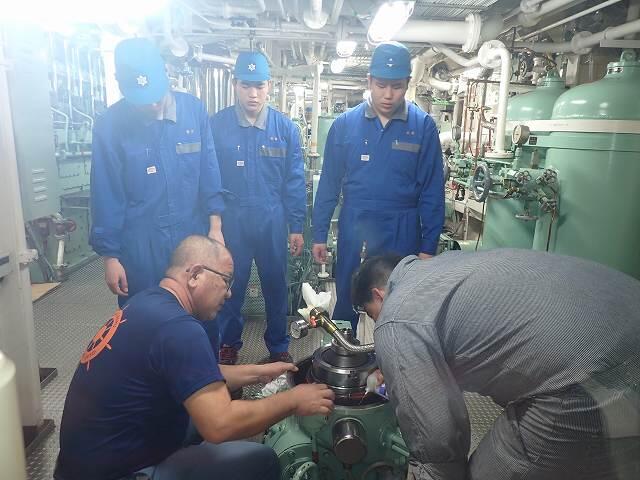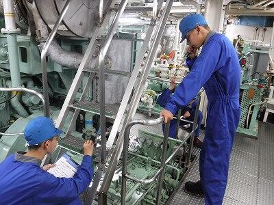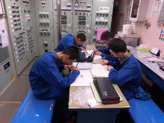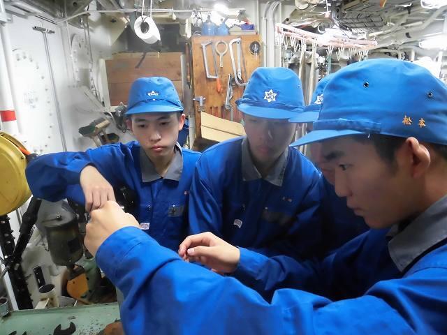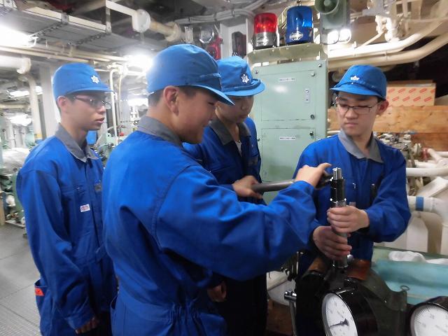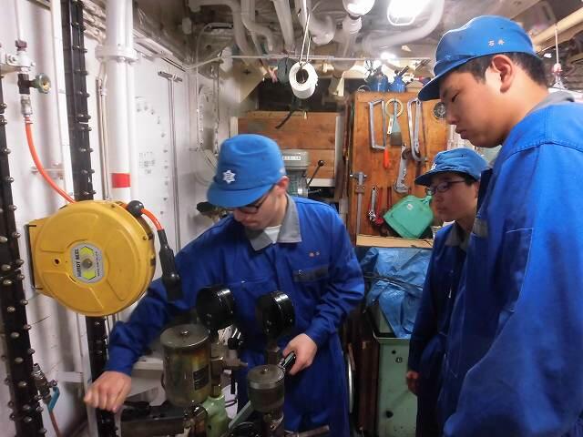 操業実習期間、流し当直の実習生はブリッジだけでなく機関室にも配置し