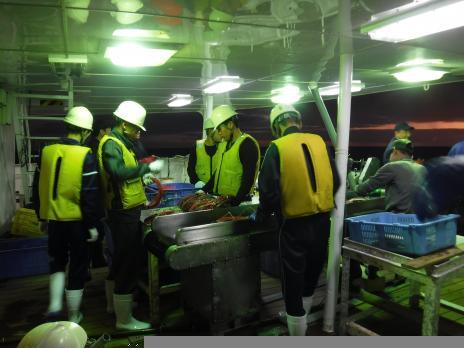 操業を繰り上げ終了した実習船もありますが、本船はもう一踏ん張り腰を据えて