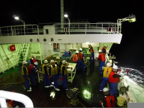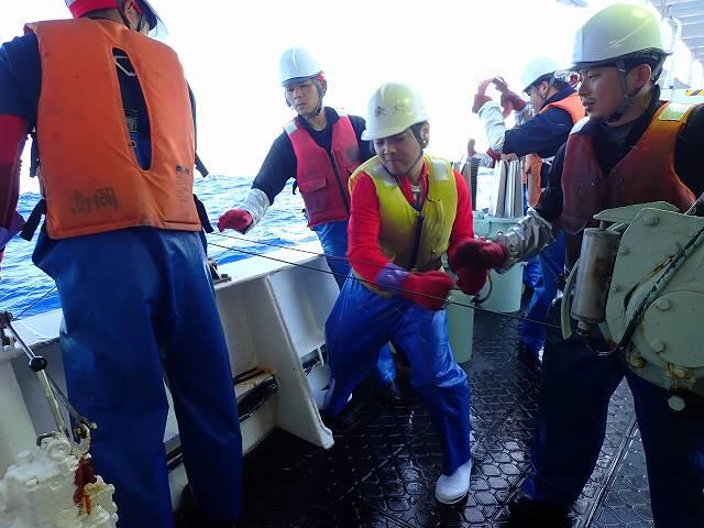 昨夜は海況良く、順調に最後の縄を揚げ終えました。