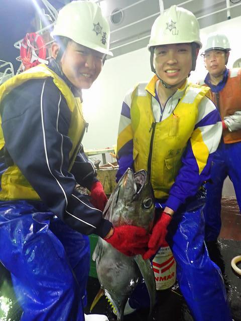 連日荒れ模様の中、操業実習中です。昨夜は久しぶりで実習生揚縄班を