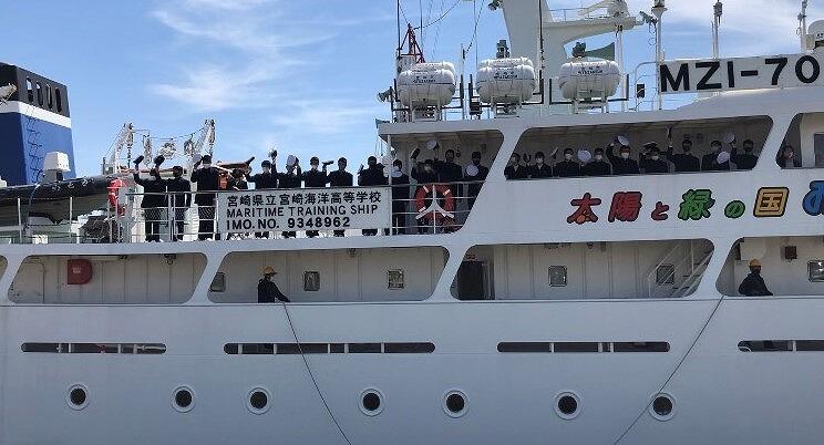 9月6日(水)に、2年A組長期乗船実習の出港式を宮崎港で行いました。