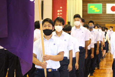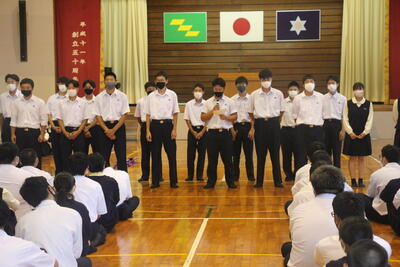その後は、中野生徒会長が全校生徒に向け、感染予防を徹底して、学校生活を送りましょうとのメッセージを伝えました。