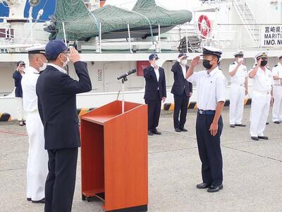 実施されます。その令和4年度 第一次長期乗船実習の出港式が宮崎港にて執り行われました。