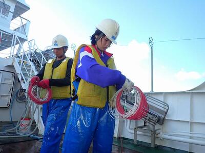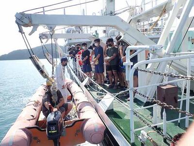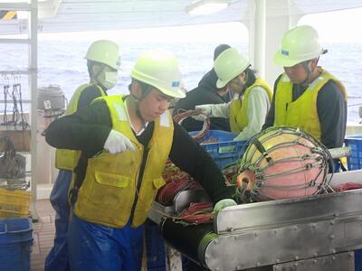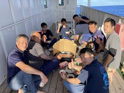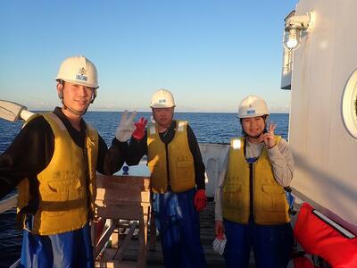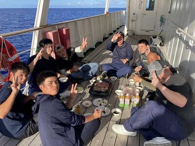 実習生は船上生活に適応し、体調不良なく猛暑下でも元気に過ごしています。