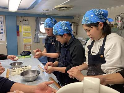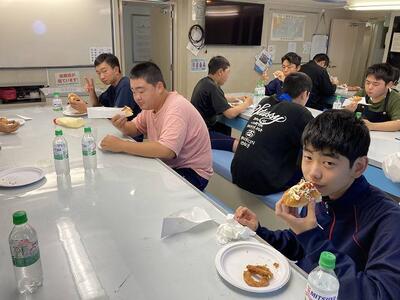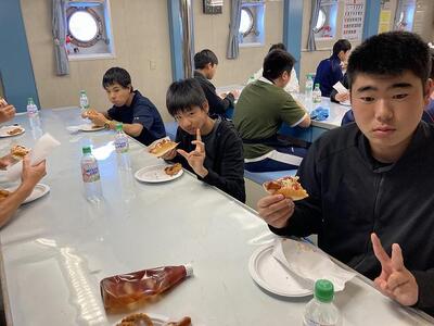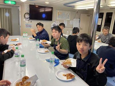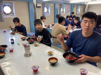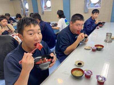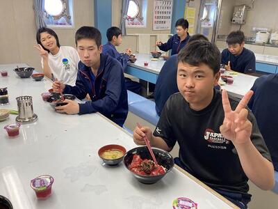 すっかり船内生活にも慣れてきました! 操業実習前の表情にも余裕が出てきました!