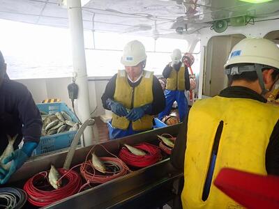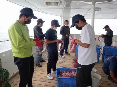 多く取れます。新乗組員も実習生と同じように練習しています。出来るだけ事前に練習をして、安全