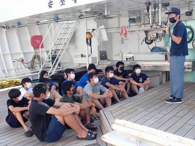 実習生が洋上の環境や船内生活に慣れるための航海を続けてきました。