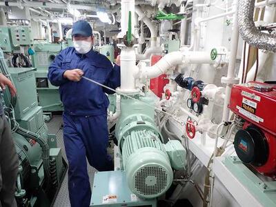 非常用空気圧縮機始動!! 主機関最高圧力の測定中!!