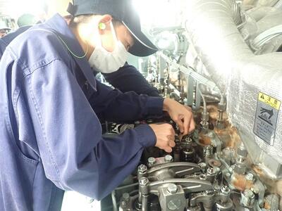 機関室では、主機関および発電機関のタペットクリアランス調整や給・排気弁箱取付け部の締付けトルク確認作業を行いました。