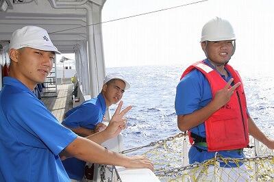 予想以上に荒天が続いていますが、実習生は一名を残して船酔いを克服し
