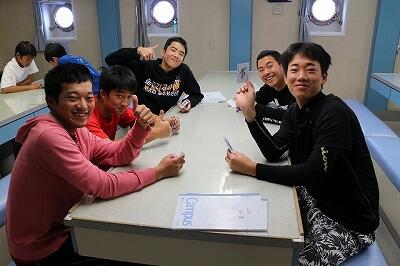 本船オリジナル企画、実習生とのサロンでディナー会を実施中です。