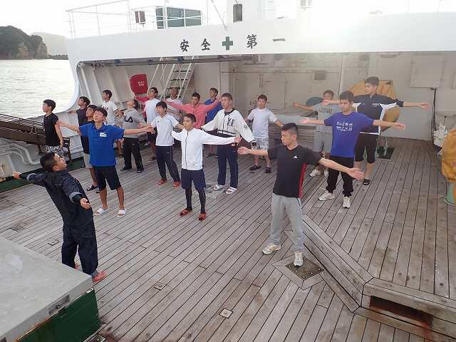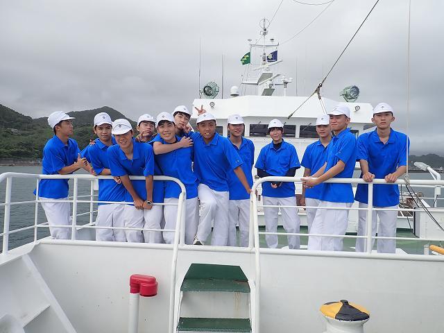 出港式では、実習生達は初めての船での生活に期待と不安が入り交じった表情をしていました。