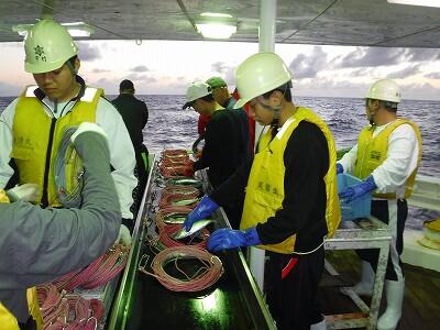 早朝からの投縄作業。眠気に負けず頑張ってます。