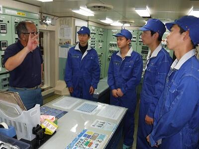 実習生は機関部当直で学ぶ実機のメンテナンス作業も楽しい様子です。