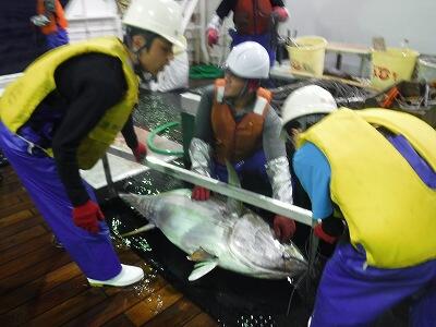 生きた鮪を初めて見て興奮していた実習生達も操業4回目になると