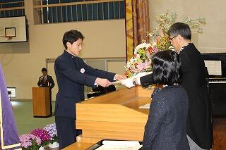 その後の表彰式では、1ヶ年皆勤・精勤、文字力テスト高得点者、多読賞、部活動成績優秀者、英語スピーチコンテスト入賞者などの生徒が表彰されました。