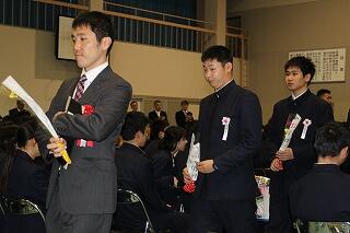離任される先生の挨拶では、体育の先生が海洋高校にエールを送ってくださいました。