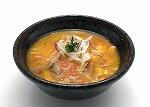 「宮崎海洋情熱の冷汁!」は、宮崎の郷土料理「冷や汁」を洋風にしたもので、トマトベースのスープに、近海カツオ一本釣 漁獲量全国1位を誇る 宮崎獲れカツオを使用したなまり節を使って料理しました。口に入れるとトマトとカツオのうま味が広がり、後からピリッとくるアクセントが特徴です。