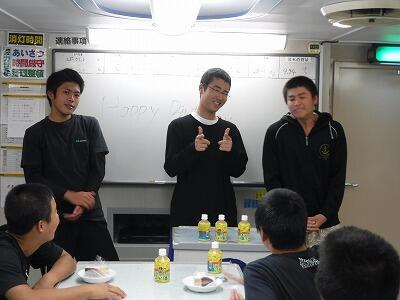 昨夜、操業実習開始に向けて実施した甲板上焼き肉食事会は大いに