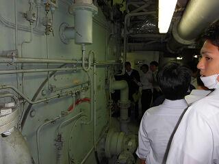 機関当直。航海系のクラスですが、機関(エンジン)当直も経験します。