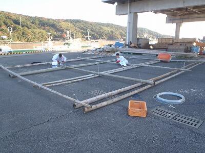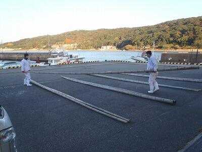 出入港時に使用するフェンダー(防舷材)作り直す作業を乗組員指導の下でしています。