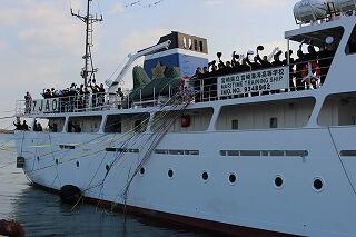 AM8時30分ホノルル港に着岸しました。校長先生はじめ、お出迎えありがとうございます。