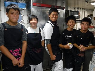 食事の様子です。毎回のご飯が楽しみでおいしく頂いています。コック長も食欲旺盛な生徒達にびっくりしています。みんな体重も少しアップしたのでは・・・?!