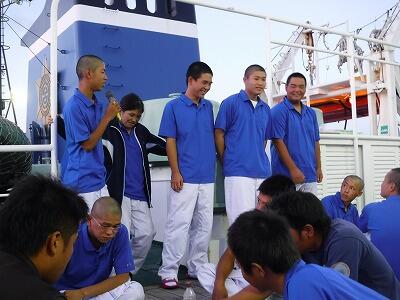 実習生は最後まで甲板上作業をこなしています。